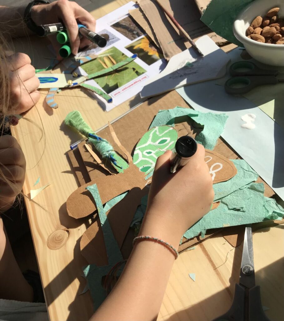 – Mindst 25 forskellige natur- og genbrugsmaterialer. Desuden modeller at tegne efter, sakse, tape, perler, knapper, metaltråd, guldsnor, lim, etc.