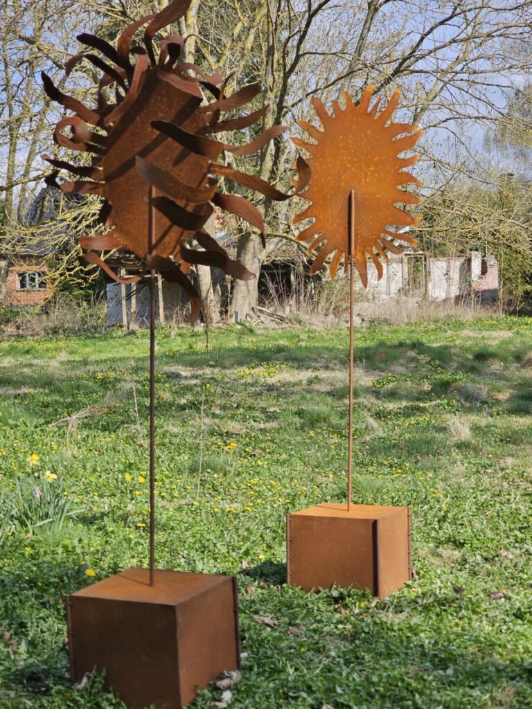 Vandet fra Svendborgsund har givet skulpturerne et rustent udtryk, patina og ekstra karakter.