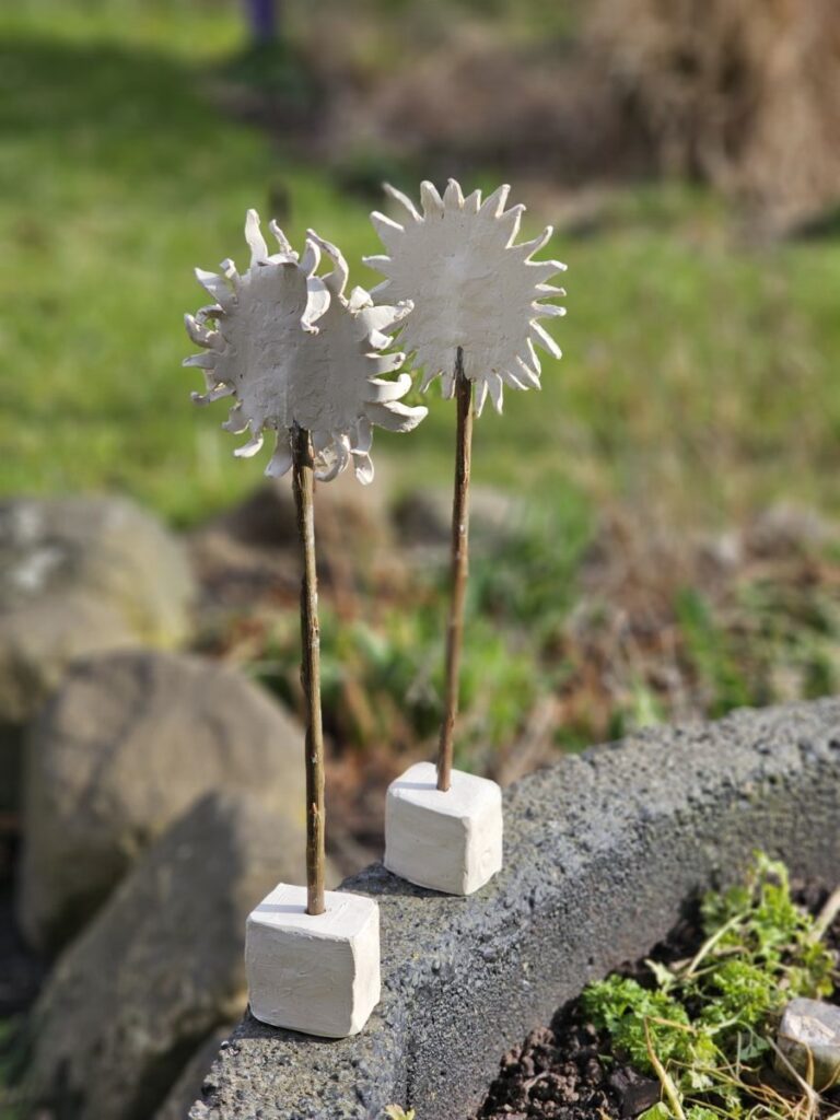 Skulpturernes udtryk kom til mig næsten samtidig med, jeg fik invitationen fra Dansk Billedhugger Samfund til at deltage i Skulptur Ølgod 2025. Til gengæld drillede titlen og fortællingen længe! Jeg ønskede at integrere “klima” i værket, og var omkring mange tanker og beslutninger, før jeg landede på titlerne:
